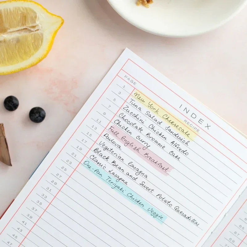 - Indexpagina’s zodat je je recepten gemakkelijk kan terugvinden